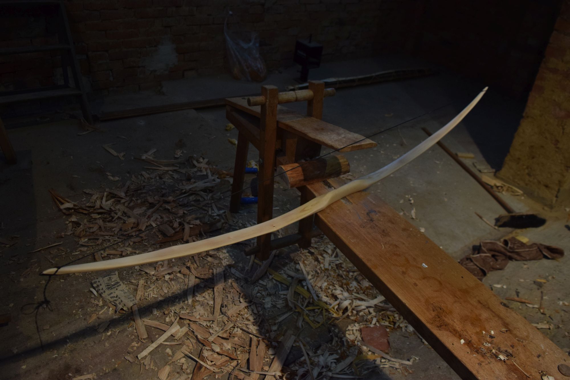 Sehnenbelag: 2 Lagen Straußensehnen 2mm, Hasenhautleim mit Fischleim gemischt, Schnelltrocknung in der Sauna