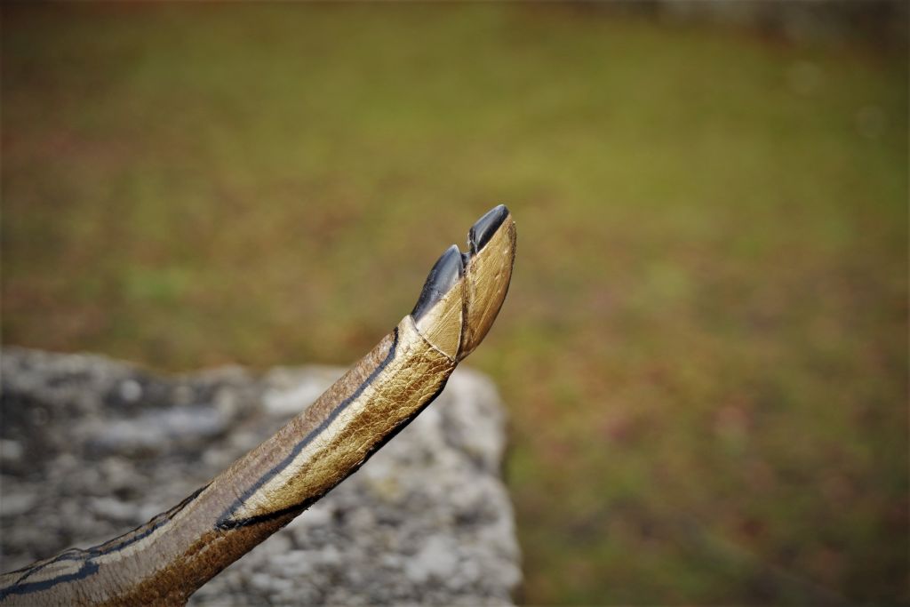 Horn: Wasserbüffelhorn 3mm, aufgeklebt mit Uhu Endfest 300