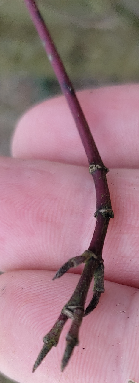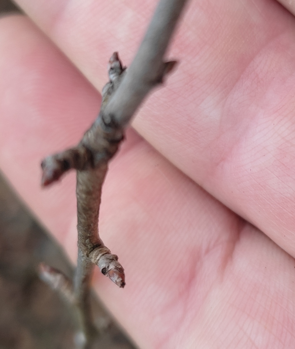 Die Wildpflaume ist etwas schwieriger, also Mal mit dem Hartriegel angefangen. Die Verletzung gab den Rücken vor.