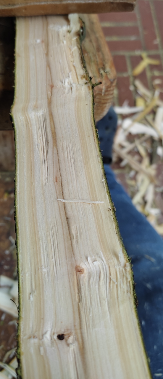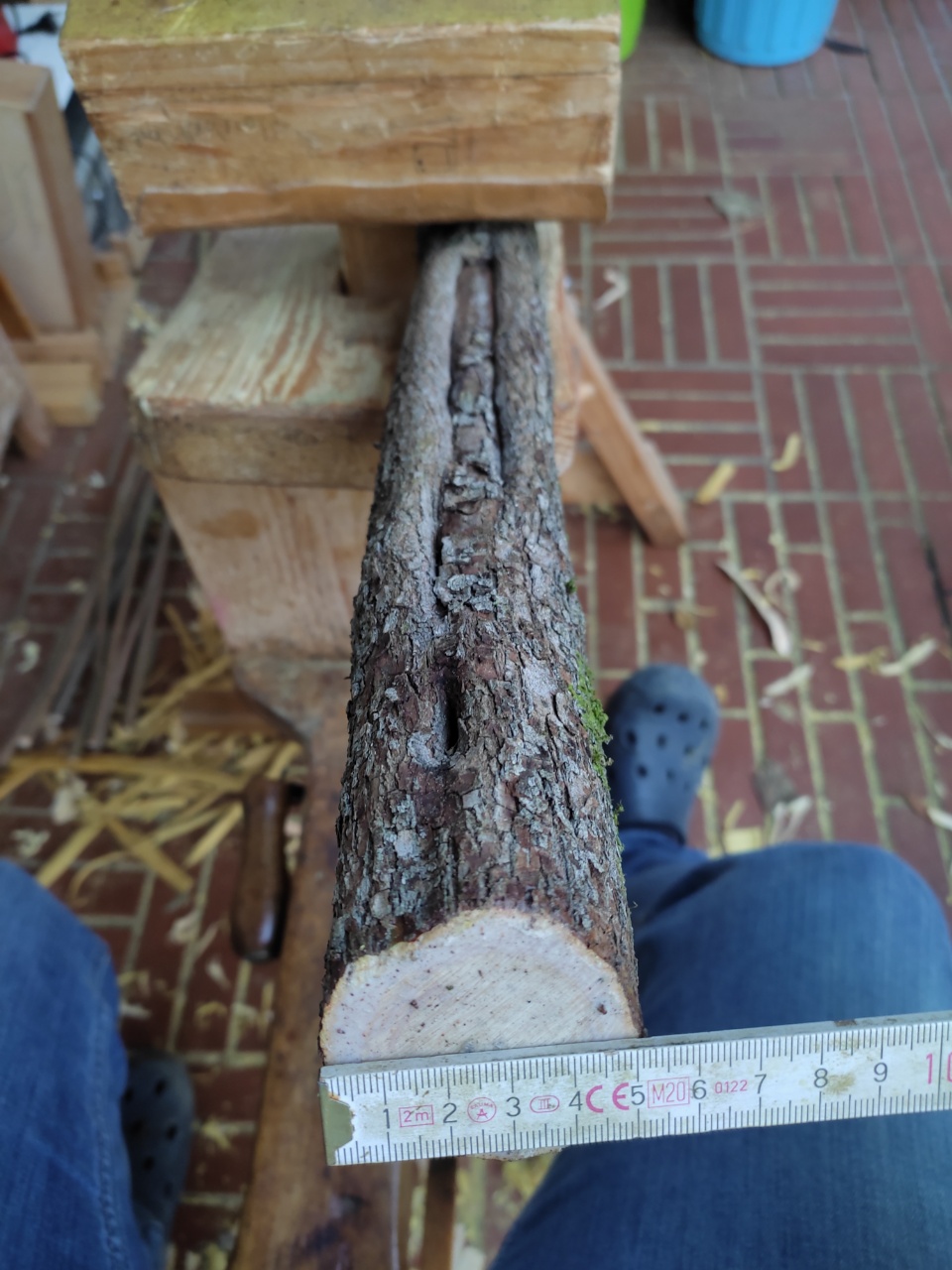 Also Mut zur Lücke und gespalten. Ging anfangs wie geplant, dann aber leider nicht mehr. Es lief blöd aus, obwohl an der Stelle kein Drehwuchs. Billets sind also gestorben. Fail.