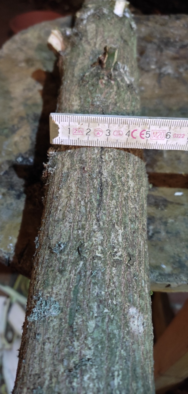 Als zweites ein eher dünner Hartriegel (mit Rinde so ca 4cm), der unten eine Verletzung hat, ich hoffe, es reicht aber trotzdem.