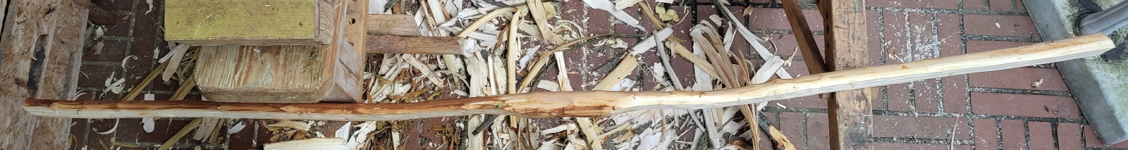 Die Breite überall gleichmäßig etwas verringert, Rinde und Bast ab, überall bis auf Griff runter auf Markkanal. Direkt vor dem Fadeout war so ein Ast. Zuerst habe ich überlegt, den Griff noch mal zu verschieben, aber der Ast war nur auf der Bauchseite und fiel sowieso weg.