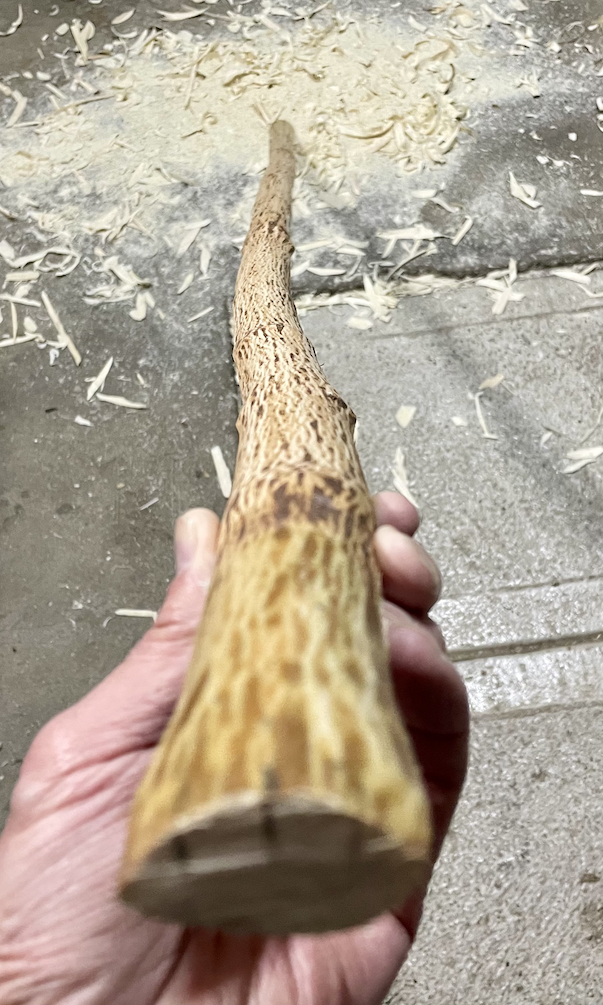 Heute hab ich beim Hartriegel schonmal etwas verschlankt und auf die richtige Länge gebracht sowie den Griffbereich festgelegt.