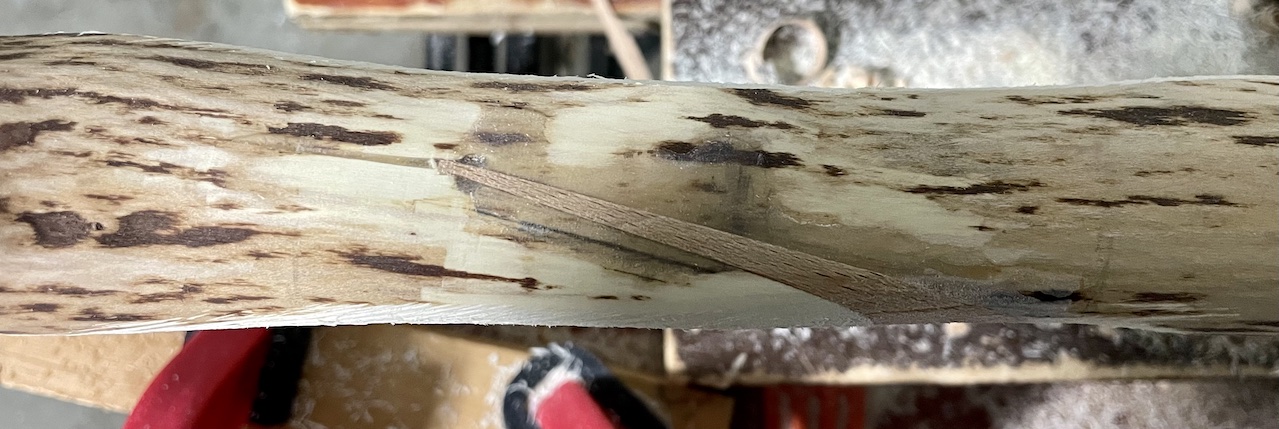 In den Entlastungschnitt am Griff habe ich noch eine Leiste eingeklebt, ich hoffe das bringt noch etwas Stabilität für den Keil.
