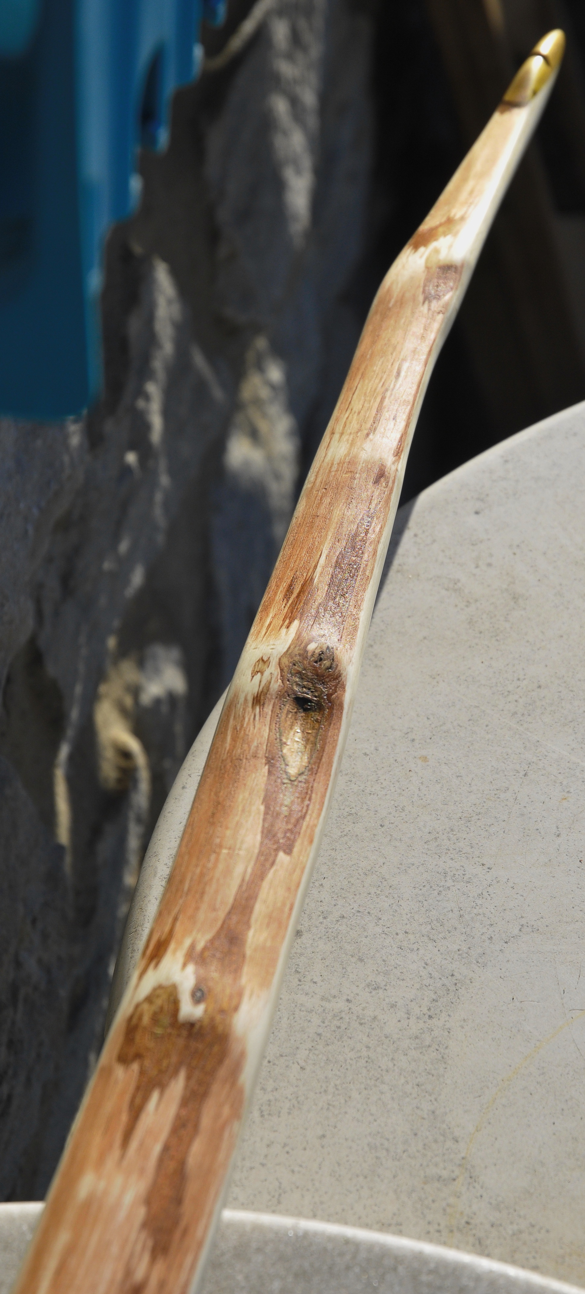 Ab der Ernte bis zur ersten Schicht Öl waren es 195h also knapp über 8 Tage. Die Sehne ist aus 10 Strang Spectra mit Dacron an den Öhrchen aufgepolstert. Finish mit 2 Schichten Tungöl und das Griffleder mit Ledercreme behandelt. Dadurch harmoniert die Lederfarbe jetzt richtig schön mit dem Bast.