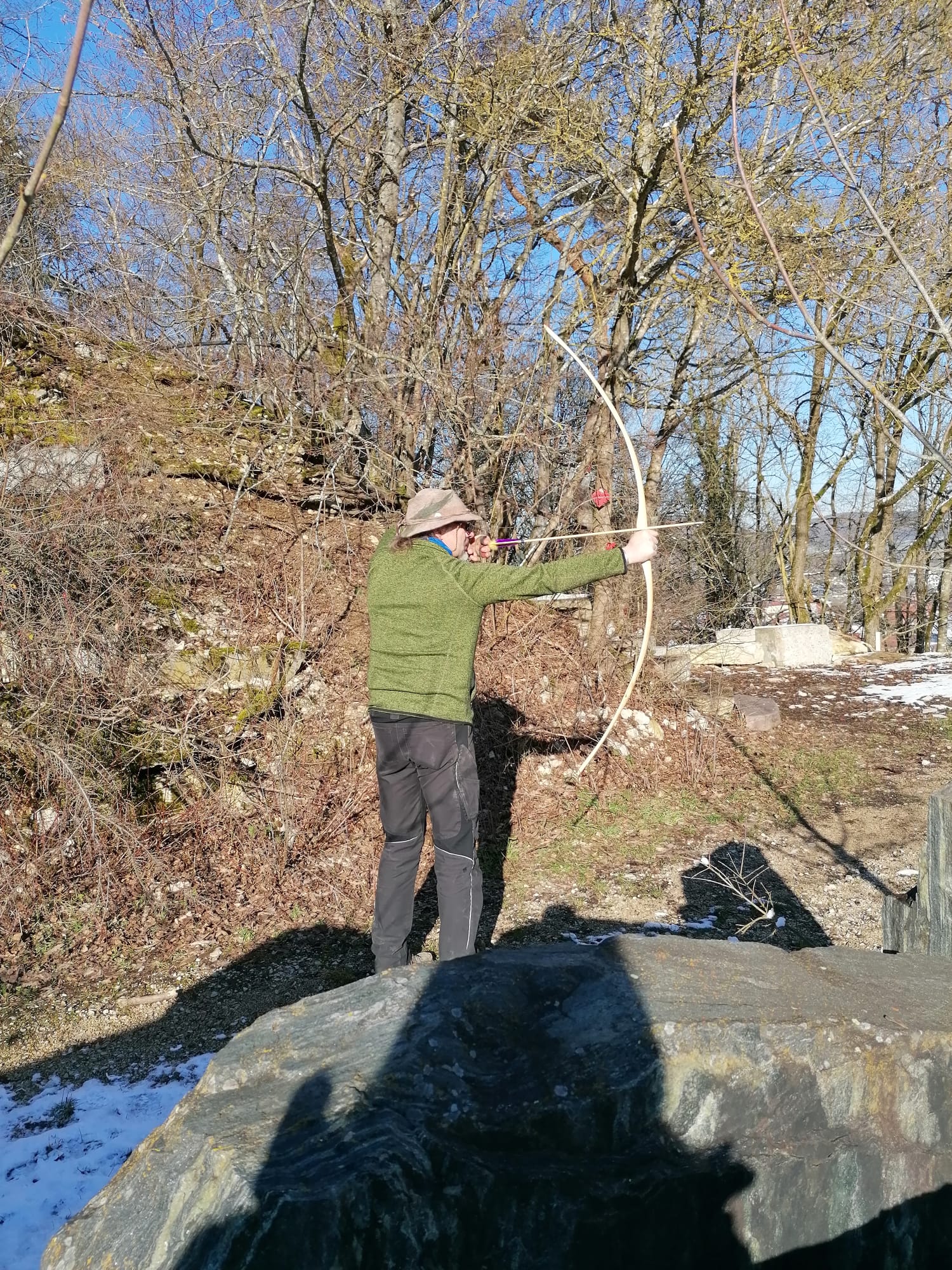 Gezeigt werden sollen Fotos vom ungespannten Bogen, auf Standhöhe, Vorderansicht und Vollauszug und mind. ein Detailfoto, also Nahaufnahme! Nicht der arrowpass aus 1m Entfernung