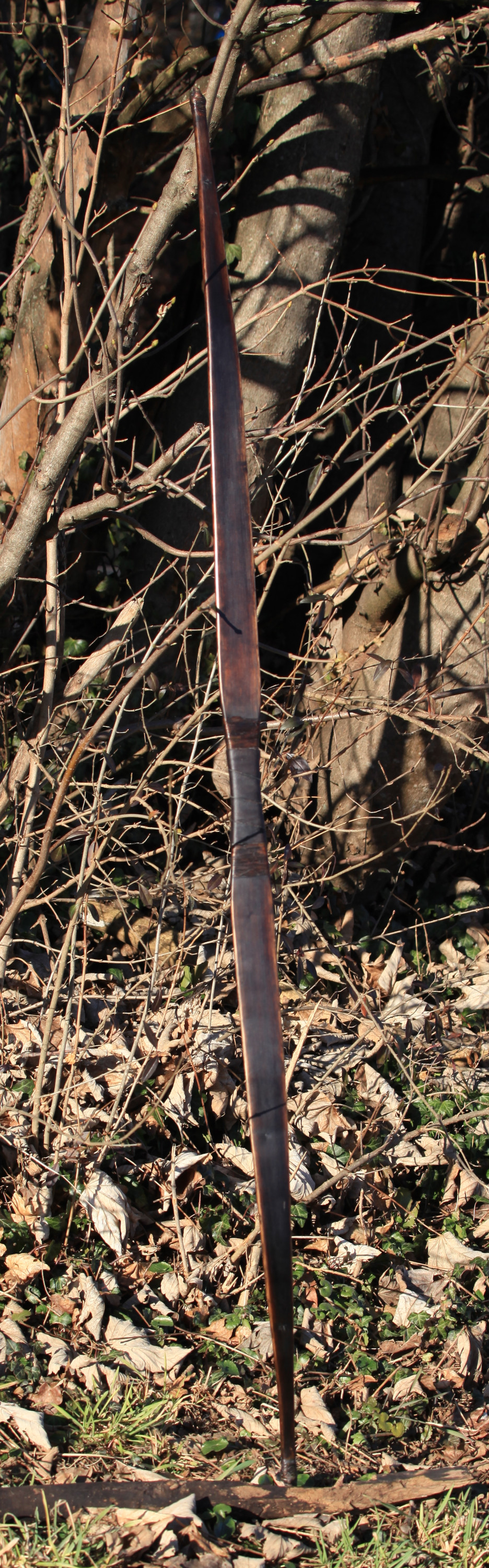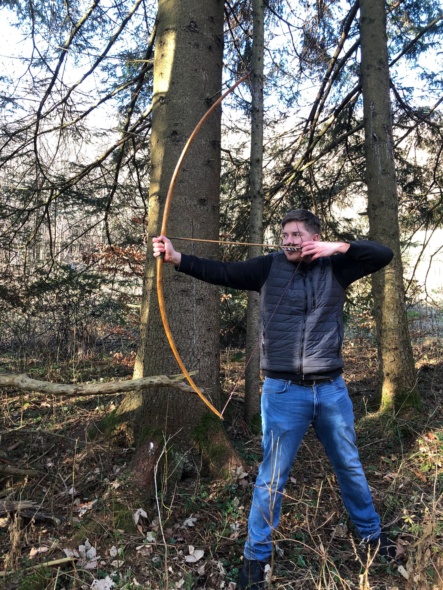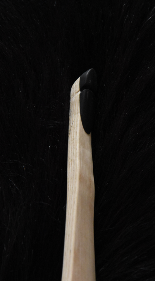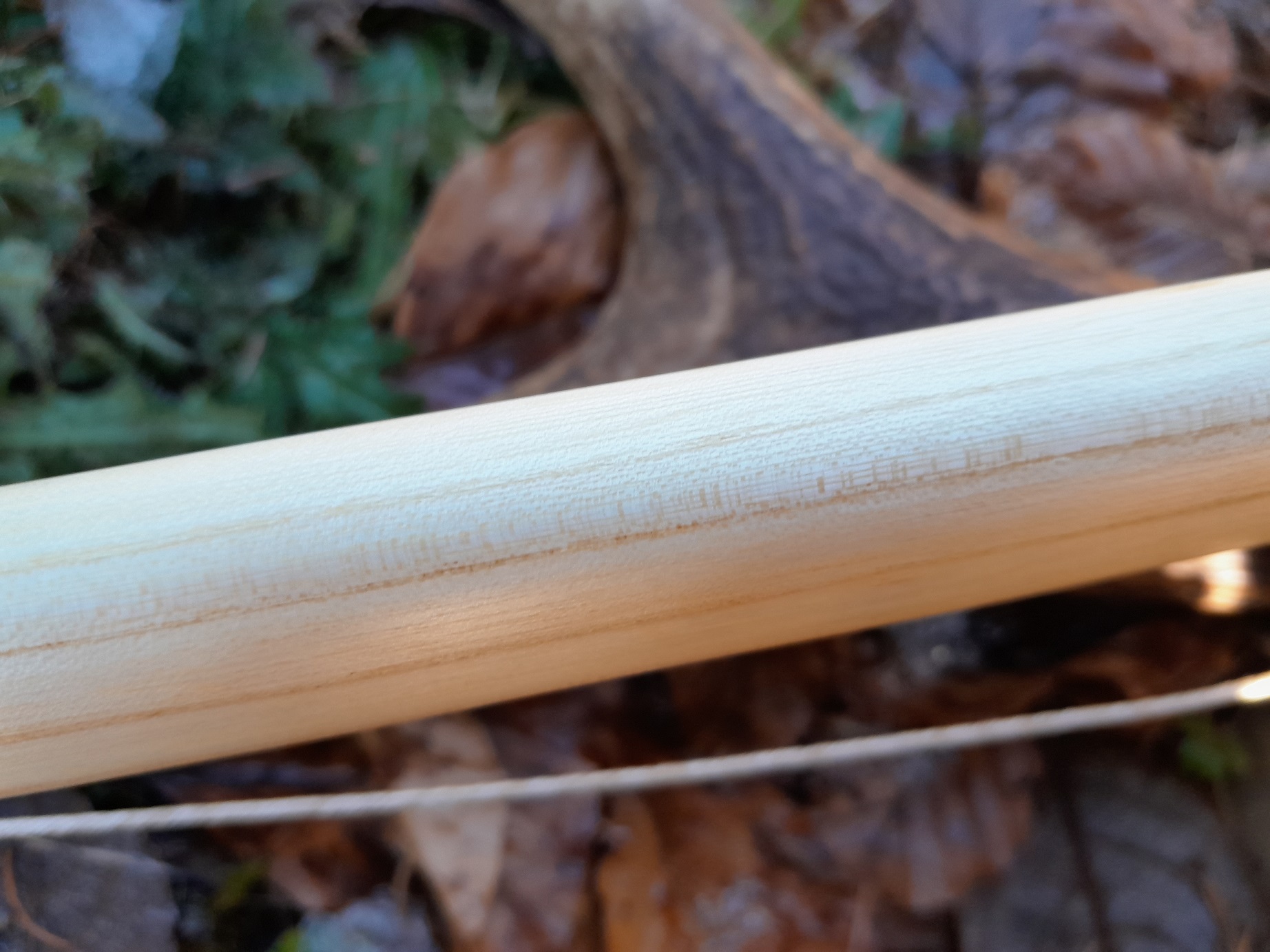 An den rötlichen Stellen war die Rinde schon vor dem fällen vermutlich wg. Fällarbeiten nicht mehr drauf. Zudem etwas Totholz und ein paar Äste. Im Griff am Bogenrücken ist ein Ast der genau zwischen den Gelenken von Ring- und Zeigefinger liegt. Und noch ein paar Details