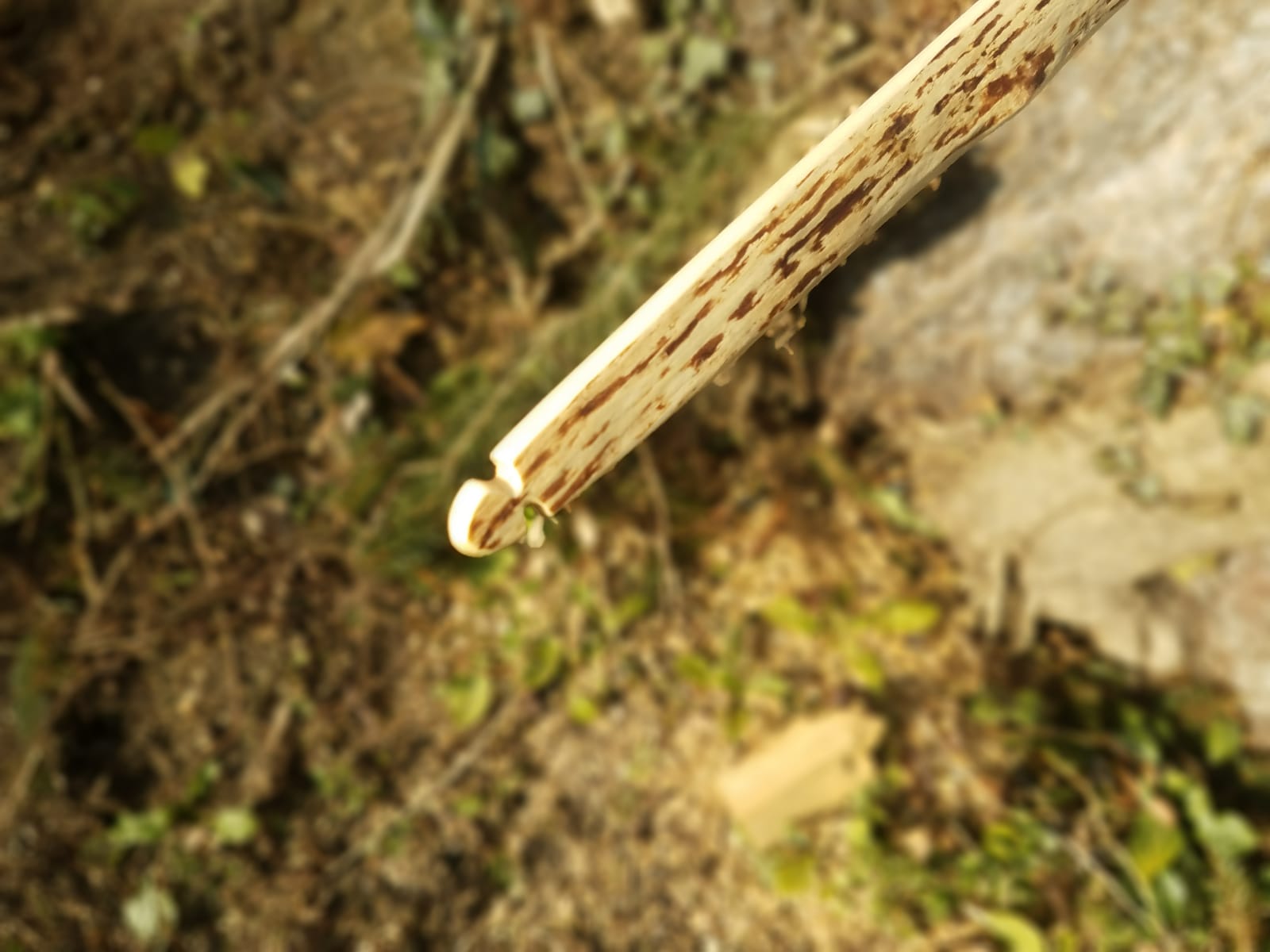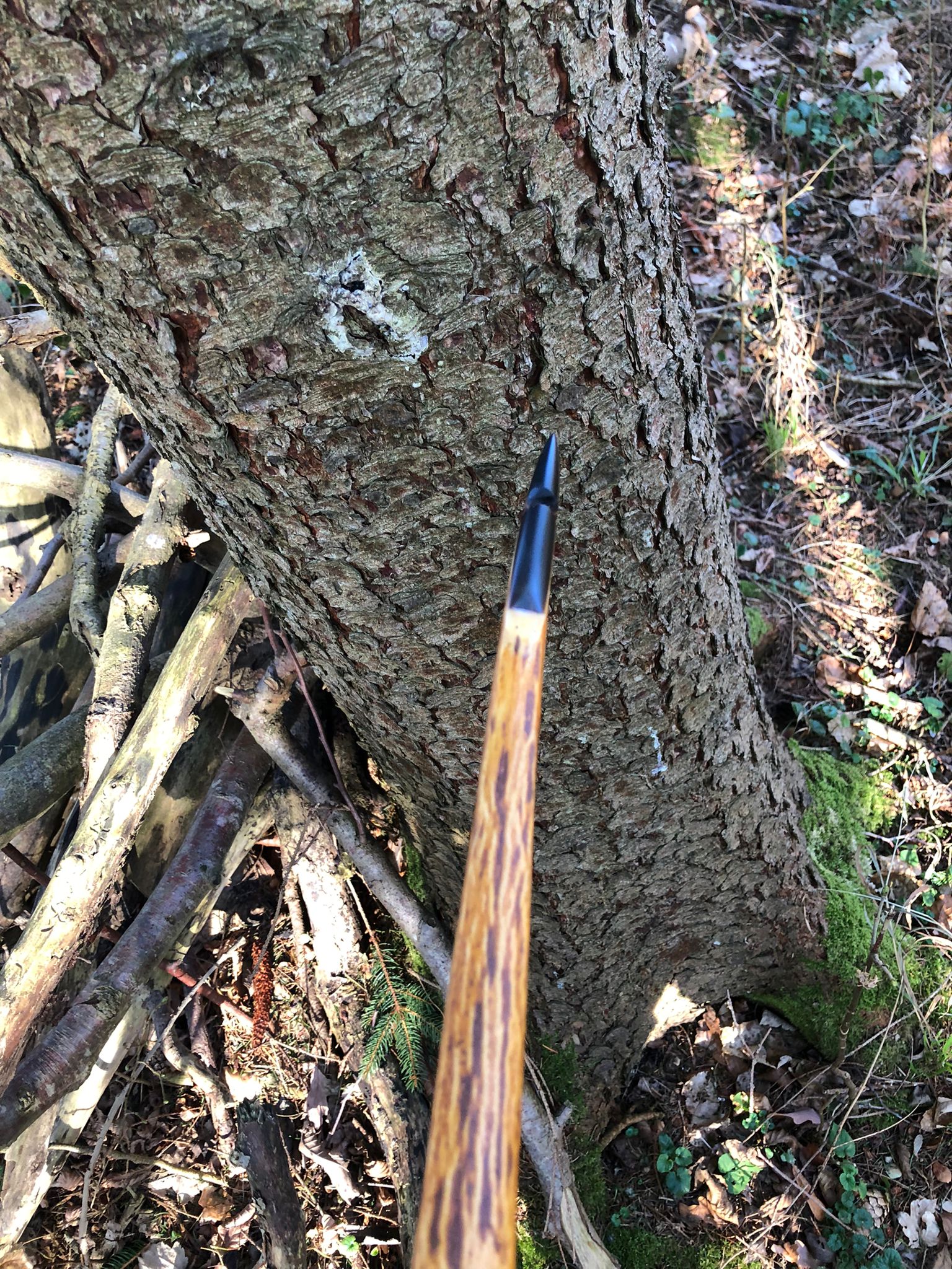 Dunkele Stelle vom Richten mit der Hlp. Dort ist auch noch ein bisschen Bast erkennbar. Direkt darüber ist der Griff.
