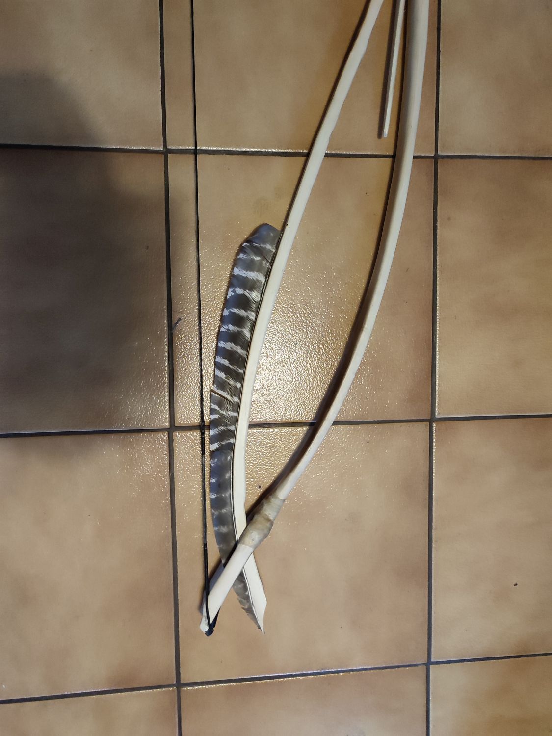 Heute habe ich den Innenbogen angepasst und leicht vorgetillert,sowie den Griff angepasst und verschliffen. Danach wurde der Griff und die Fades mit 10% Hautleim grundiert und die Straußensehnen und Rinderrückensehnen mit 25% Hautleim aufgebracht.