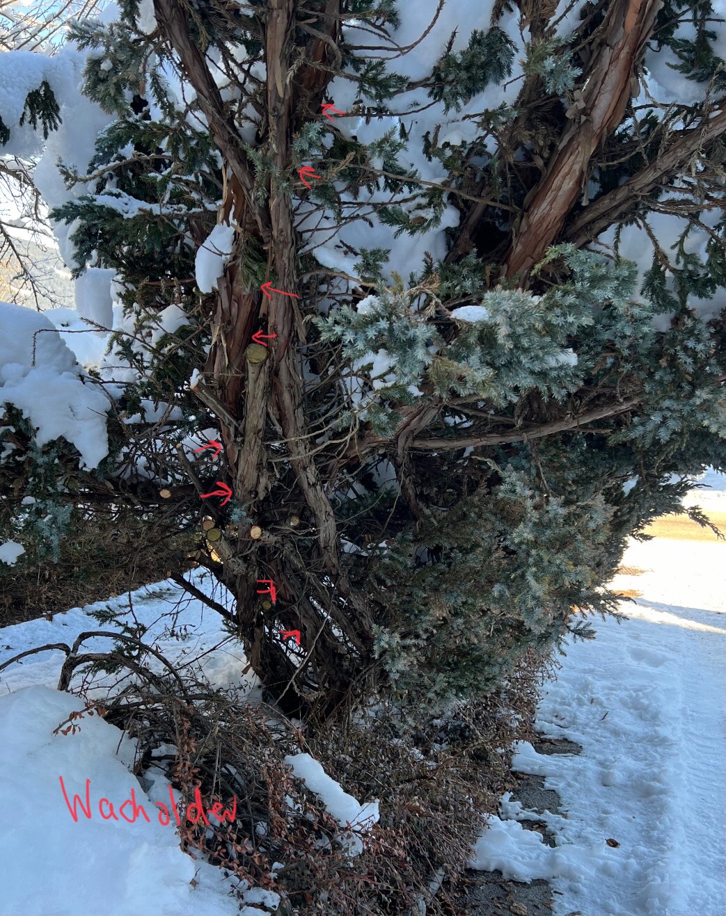 Beim Foto vom Baum kann man die Nadeln ganz gut erkennen. Für mich ist das auch Wacholder.