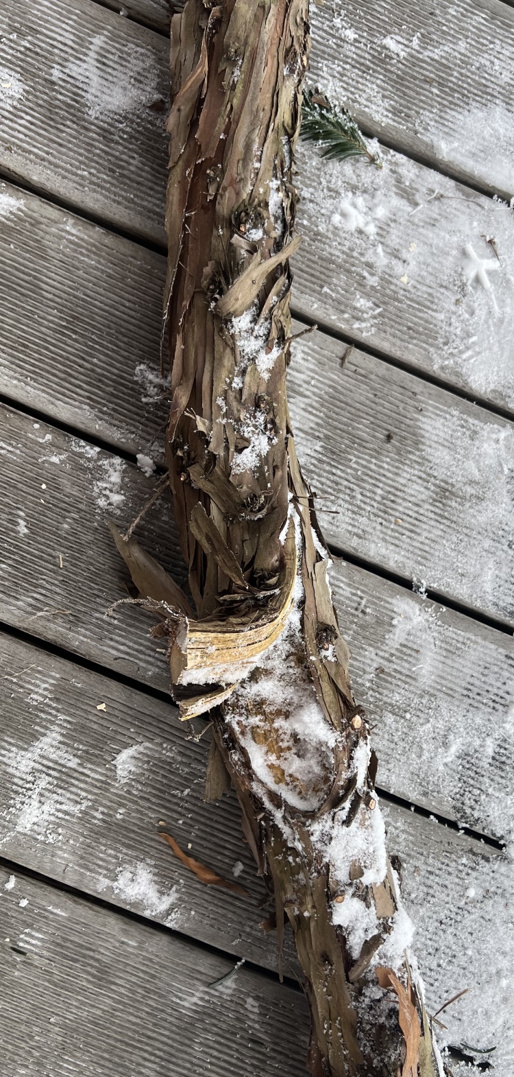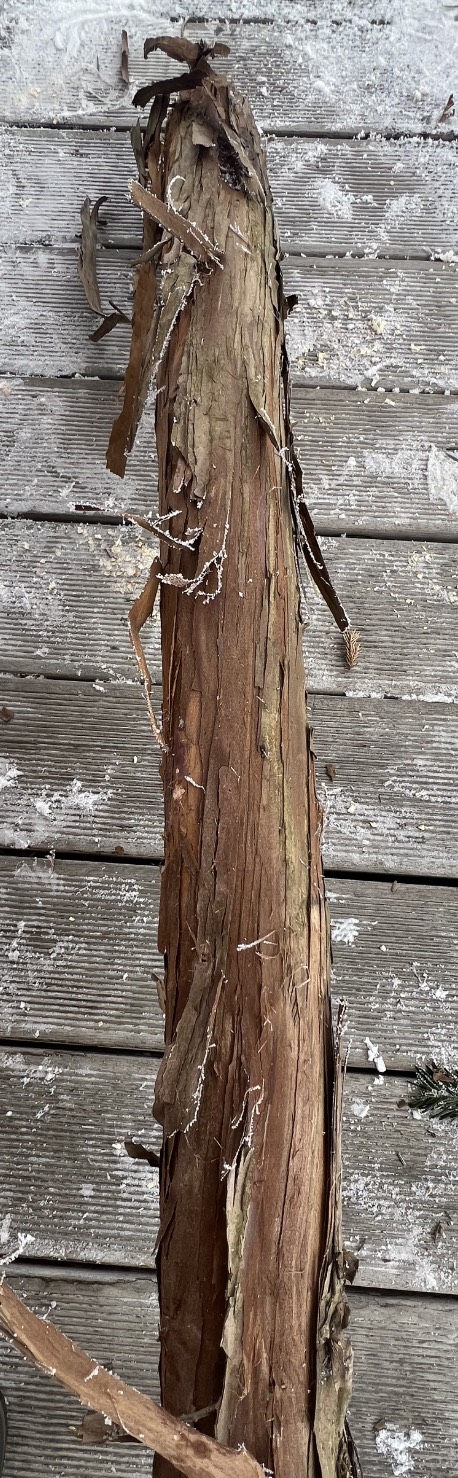 Also meine Recherchen haben ergeben, dass es sich um einen Alpen-Wacholder -Juniperus communis var. saxatilis, Syn. Zwergwacholder- handeln könnte. Die Anordnung der Blätter, die Rinde und die Wuchsform und die kleinen 2mm Ästchen sprechen dafür. Der Stave hat leider einige unschöne gärtnerische Bearbeitungsspuren. Im Bereich der Ästchen ist die Oberfläche schlitzförmig tief eingezogen. Der Bogen taugliche Teil hat nur eine Länge von 110cm. Schön zu sehen am Querschnitt ist das minderwertige Druckholz. Neumi wollte mal was darüber schreiben und Benzi findet es unglaublich schön. Ich habe in der Vorbereitungszeit darüber nachgelesen (Wiltschko Bogenbau 2 Flachbogen):