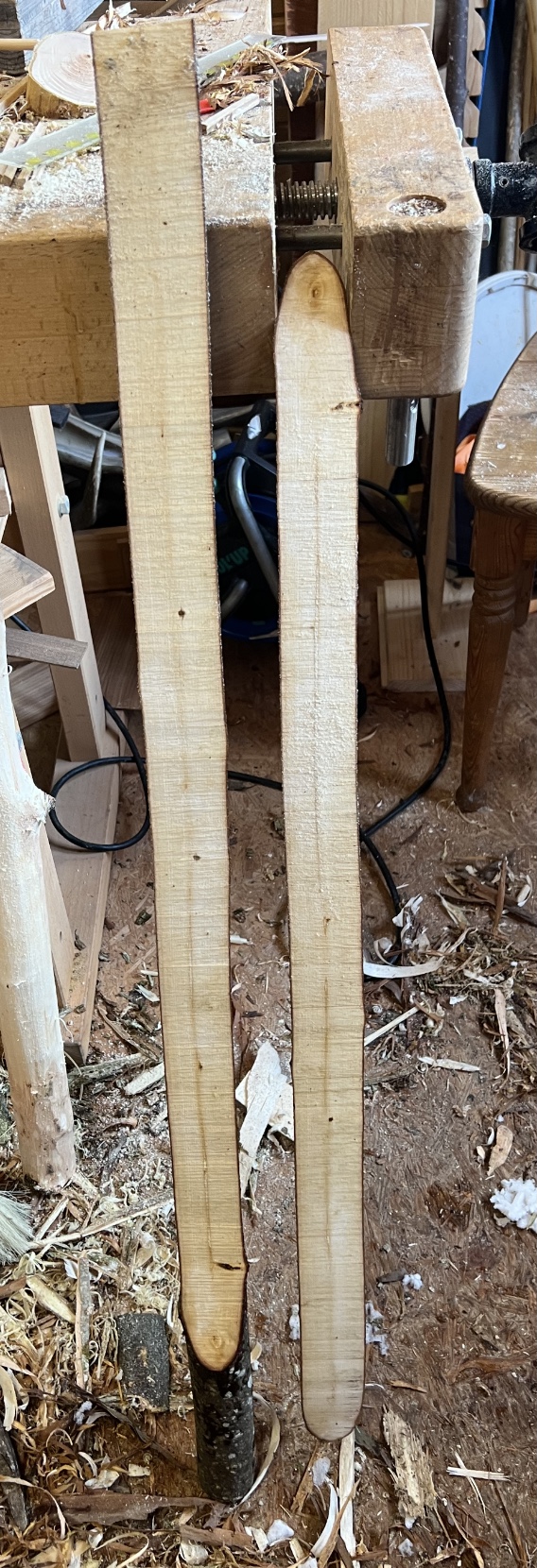 Im Grunde habe ich aus dem Wacholder nur einen 110cm langen halben Stave und ein paar Restabschnitte erhalten können. Vielleicht fällt mir dazu noch was ein, die Wacholderteile werden vorerst zum Trocknen in die Ecke gestellt