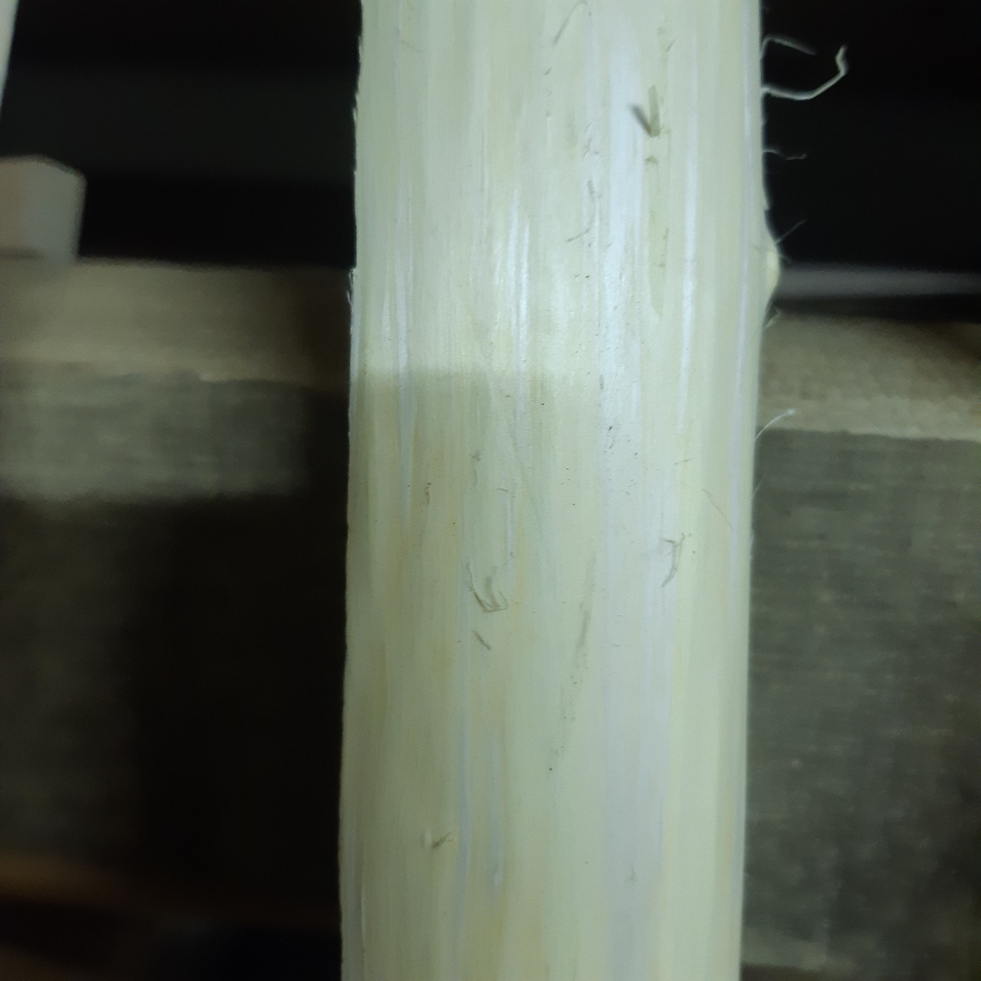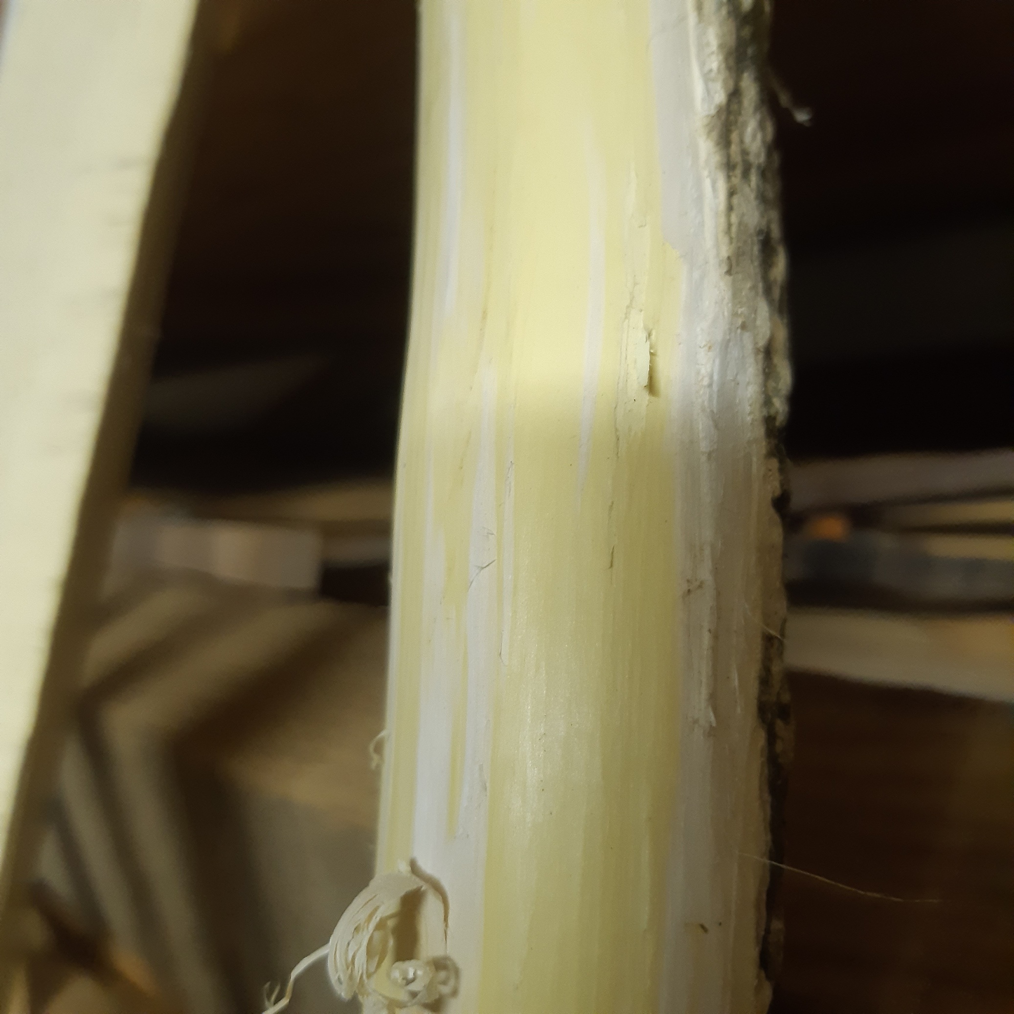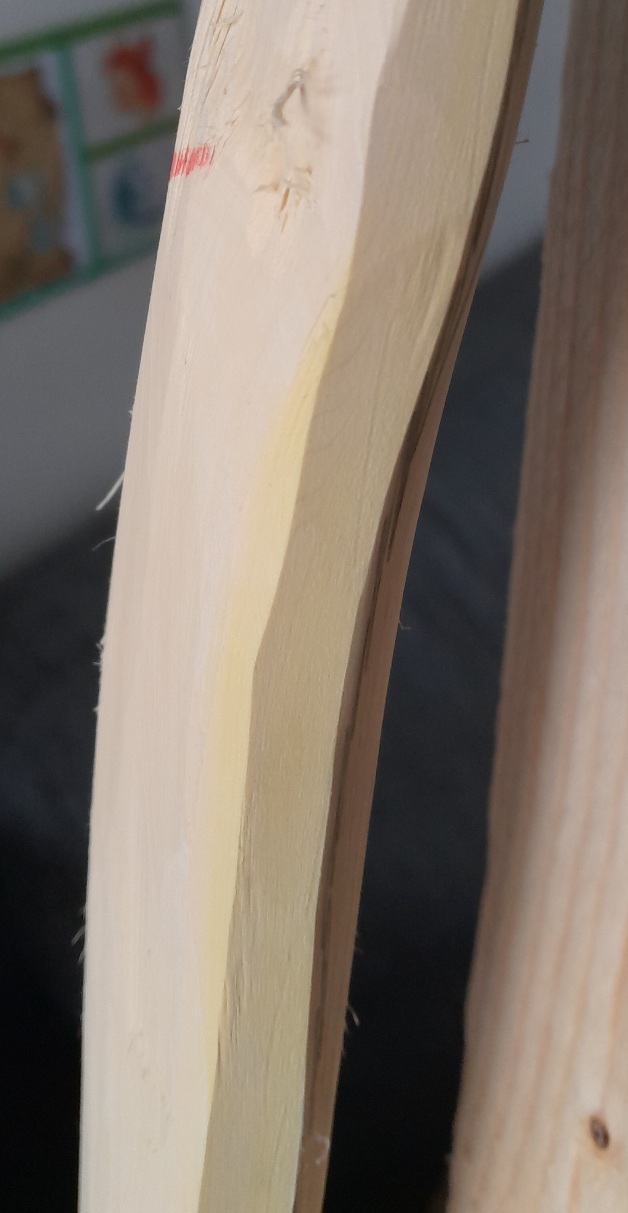 Das gelb was ich am Bauch weggeschnitzt habe, ist nichtmehr gekommen. Habe das Gefühl, dass die Gelbfärbung was mit dem Wassergehalt zu tun hat, zumindest bei meinem stave.
