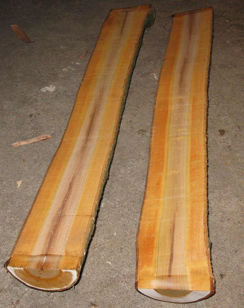 Den einen stave habe ich am Bauch einlackiert, sozusagen eine Rinde am Bauch. Hauptrisiko bei den Beiden ist die Dicke von etwas über 3cm in der Mitte bei diesem extrem rissfreudigen Holz.