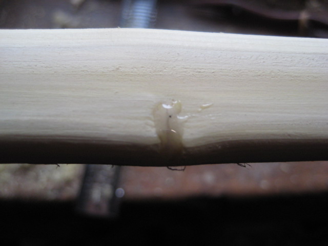 Bogen reflex fixiert, und dann mit der HLP getempert.<br />Das noch heisse Holz gleich mit Leinöl-Schellackgemisch eingelassen.24 Std fixiert.