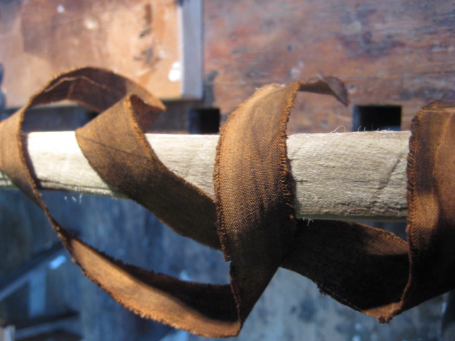 Auf das Hanfbacking kam heute zu allem Überfluss noch ein Stoffbacking; Baumwolle oder Leinen(?)Den Stoff habe ich mit Clou-Beize braun gefärbt...