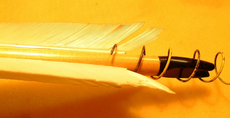 leider passiert es mir immer wieder das ich nach dem wickeln feststelle das der winkel zwischen 1. und 2. feder ein bischen anders ist als zwischen 2. und 3. feder. das kann ich aber erst feststellen wenn ich den fertigen pfeil drehe. solche sachen ärgern mich einfach.