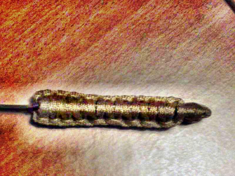 Der Griff besteht übrigens aus einer geraden Wicklung(grüne Schnur, rund) und der gelben Flachen.Dadurch hat man natürlich mehr in der Hand.