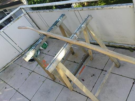 Wenn Du Dir viel Arbeit machen möchtest, kannst du natürlich aus den abgesägten Reststücken 2 halbwegs gerade Stücke rausspalten, und die dann an beiden Enden ansetzen! Ebenfalls leicht nach vorn abgewinkelt wäre zu empfehlen...