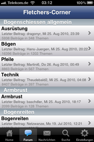 Da ich seit ein paar Wochen IPhone Besitzer bin, habe ich mich vorhin mal umgeschaut, wie man am besten unser Forum mit dem IPhone ggf. von unterwegs besuchen kann. Eine bessere Möglichkeit als mit dem Safari Browser bei dem natürlich Grafiken etc mitgeladen werden, die man unterwegs eigentlich nicht braucht, ist eine App für unsere Forensoftware phpbb. Die App nennt sich Touchbb und ist im IStore als Freeware und als Kaufversion für 79Cent verfügbar. Mit dieser App kann man nicht nur im Forum lesen, sondern auch Posten und IMs/PMs senden und lesen. Eine sehr geniale App für unterwegs.