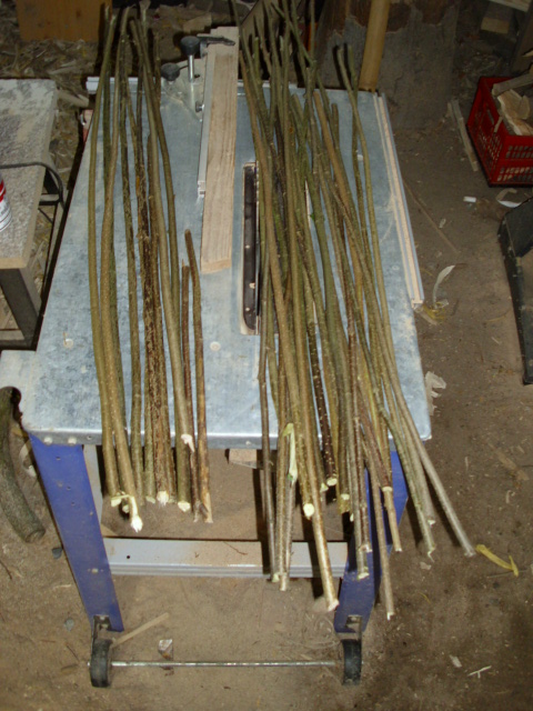Einen Teil habe ich schon fertig endrindet , das geht frisch sehr fix, nur 3 Stecken waren noch sehr nass unter der Rinde .