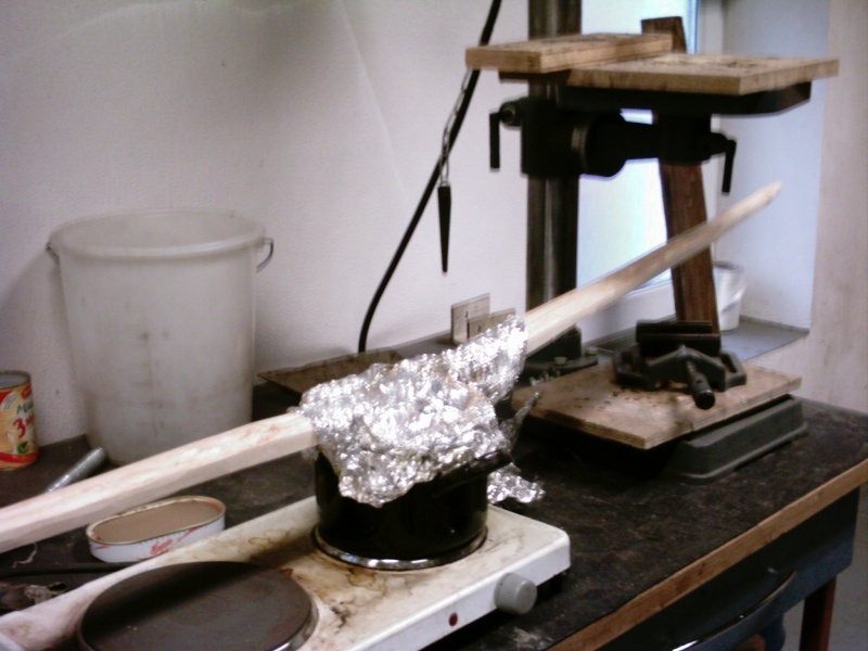 aktueller Stand:Habe am vergangenen Montag meine Hasel getempert, ist echt super geworden, Form hat sich stabilisiert und ein paar Pfund mehr Zugkraft sind auch dabei herausgekommen (33#@28" , hab leider die gewollten 40# nicht geschafft, aber vielleicht beim nächsten Mal). Aber für meinen 2.Bogen überhaupt bin ich zufrieden!