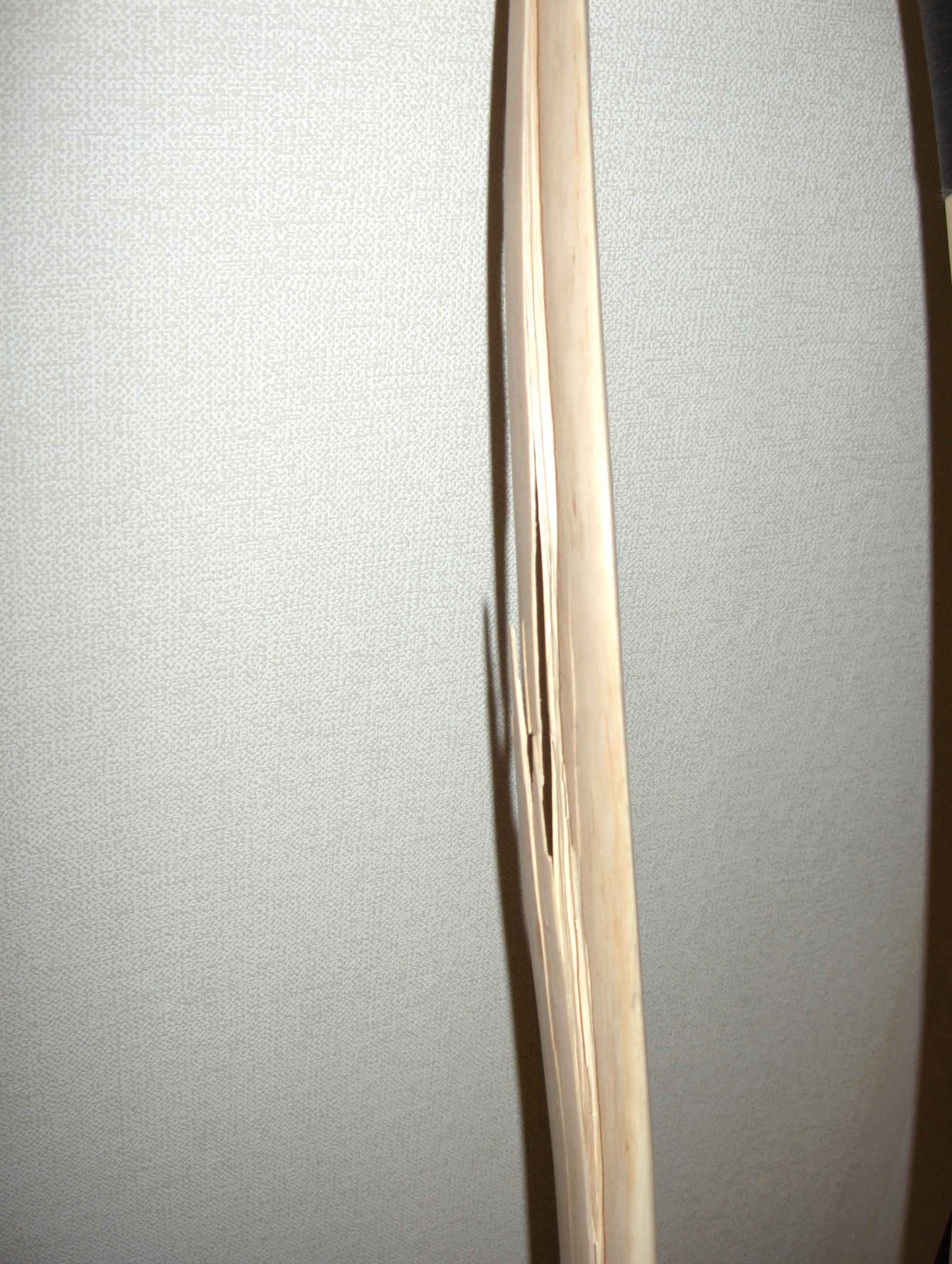 Stellt sich nur die Frage warum die Dinger alle gleich gebrochen sind. Übertrockenen (innen feucht und aussen trocken) - ich weiss nicht. Ich hab beide erst in Form gebracht (1,6 an den Tips und ca 2cm an den Fadeouts) und dann erst getrocknet. Da ist nicht mehr viel Holz vorhanden das innen feucht bleiben kann. Beim zweiten Bruch hatte ich das beim Ausziehen bereits im Gefühl. Irgendwie wusste ich, das ich ihm zu viel Auszug zumute.