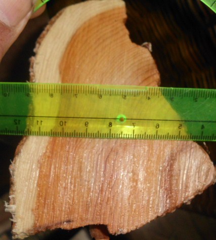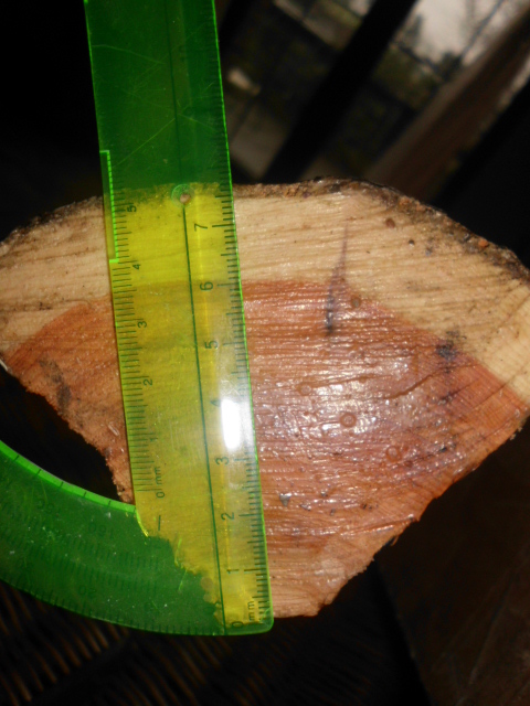 Mittlerweile ist der große stave geteilt , er wurde mittig (mit Führungsschnitt , 1,5 cm tief ) gespalten und nun sind es 2 sehr schöne staves .
