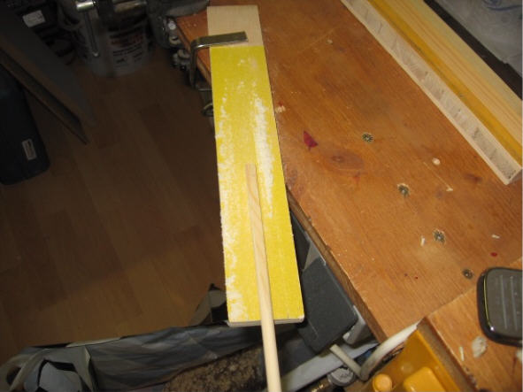 Danach wurden die Quadratleisten mit des selbsgebauten Schaftfräse (ein Zwischending aus der von Klaus1962 und der im Buch gezeigten) auf 8,2mm gefräst.