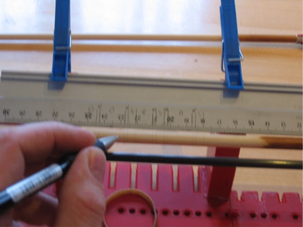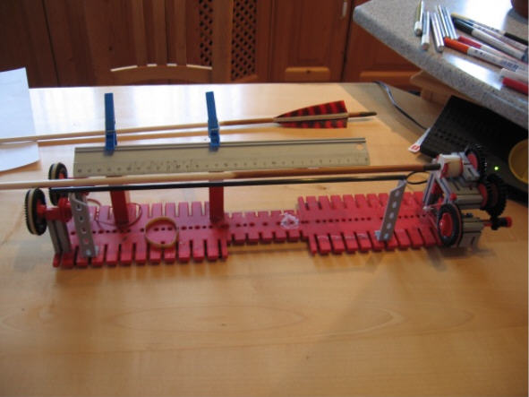 Danach spine ich die Schäfte auf die gewünschte Stärke durch abschleifen von Hand mit der Schleiflade (Es funktioniert gut, die Schäfte sind halt nicht alle genau 8mm dick sondern einige im Mittelteil nur halt 7,95 oder 7,92mm - ich denke das dürfte kein Problem darstellen) Den Bau des Sinetesters findet man ebenfalls im Buch von Volker Hübschmann.