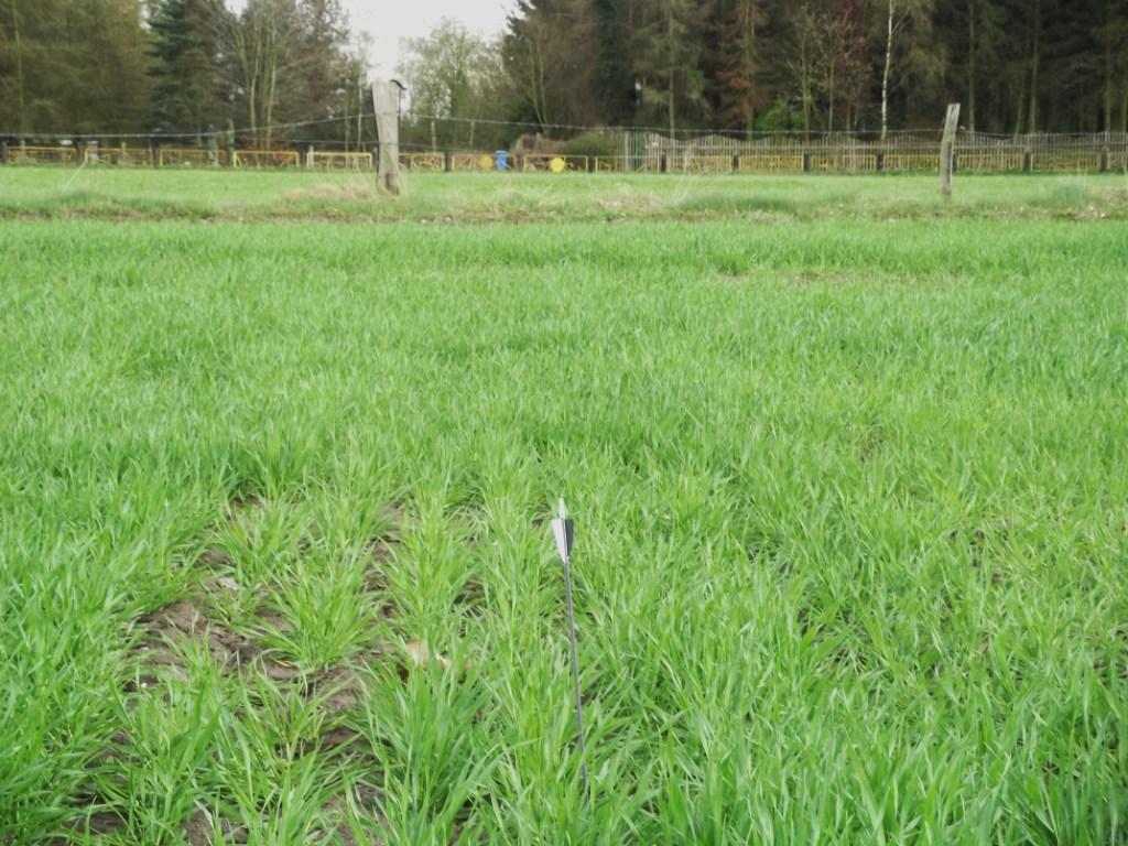 Und vorgestern hab ich mal die Weite getestet... wie man am Abschußbild (1) und am Einschlagwinkel des Pfeils in Bild 2 sehen kann, geht da durchaus noch etwas... übrigens, der gelbe Zaun, von dem aus ich geschossen habe und der da auf dem zweiten Bild im Hintergrund zu sehen ist, ist knappe 118-123m entfernt... ;)