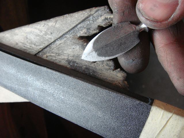 Nun wird das Blatt zurecht gefeilt und mit dem Schmirgelholz geschliffen.