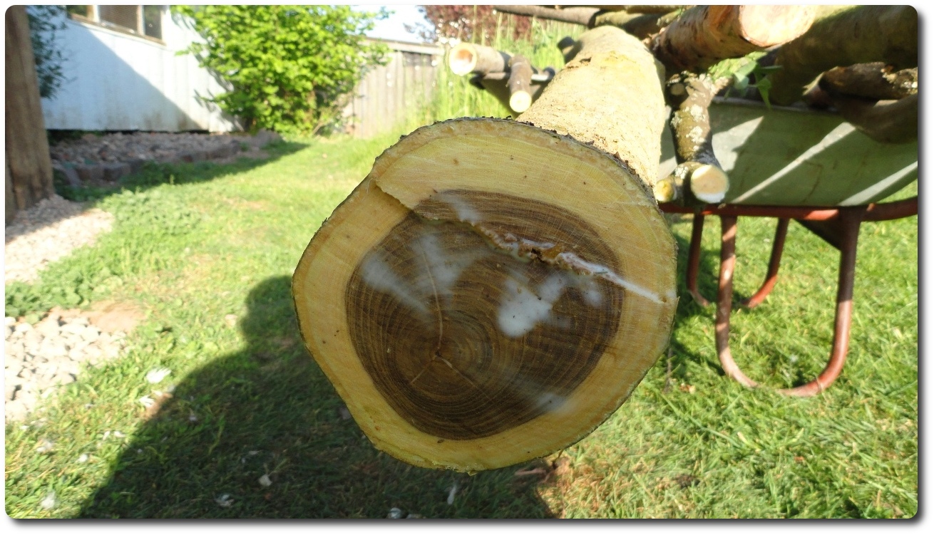 Gestern bin ich nämlich endlich dazu gekommen, den Nußbaum , den ich im Dezember "reduziert" habe, aufzusägen.