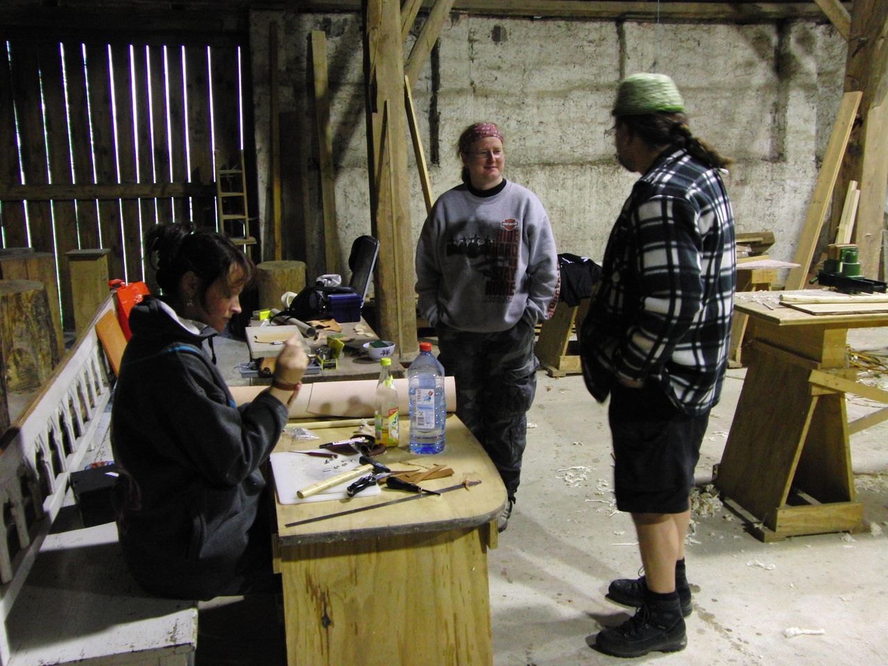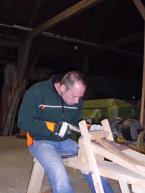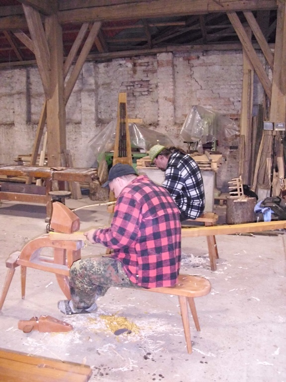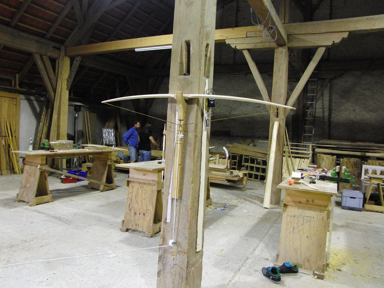 Dies änderte sich jedoch bald und schnell war die Scheune von fleissigen Bogenbauern bevölkert. Holger an seinem Hickory Flatbow