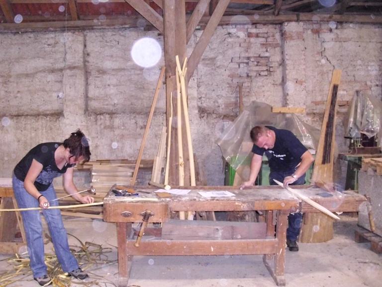 Moni und Andreas reparieren das kleine Spinnrad