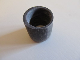Darauf wurde in die Bohrmaschine ein zuckerhutförmiger Schleifstein aus dem Dremelprogramm eingespannt (man kann auch einen eckigen solchen vorher zurechtfeilen). Der vorgebohrte Zylinder wurde dann per Rohrzange ergriffen und so über den rotierenden Schleifstein geführt, dass dieser die Ausbohrung erweiterte (ganz zylindrisch wurde die Ausbohrung leider nicht). Dabei habe ich immer wieder Pause gemacht und gesehen, ob das Ganze nunmehr auf den Daumen passt. Als der Ring mit Gewalt drüberging habe ich aufgehört, den Zylinder abkühlen lassen und auf die u. g. Länge abgesägt.Orientierenung für die Länge war, dass eine ausreichend lange Versteifung des ersten Daumengelenkes möglich sein mußte (chin. Schießen mit gestrecktem Daumen).