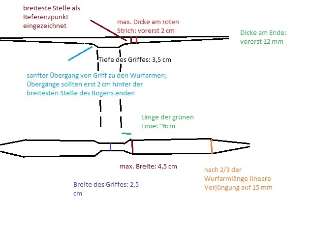 Ich hatte mal einem Freund eine grobe Skizze eines Flachbogens geschickt. Vielleicht hilft sie ja weiter.