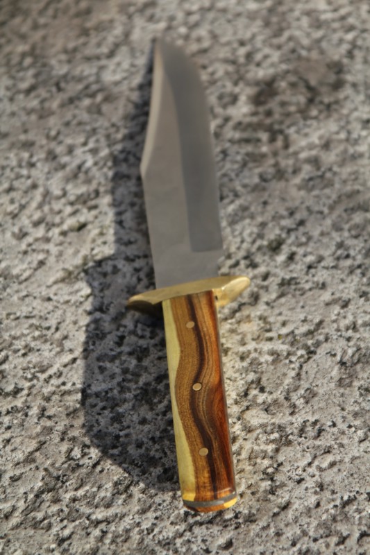 ich habe zwar noch nicht viele Messer(-griffe) gemacht aber ich finde das dieser tollen Klinge ein edler Holzgriff eher stehen würde. Vielleicht Nußbaum oder Pflaume, evtl. mit einem helleren Holz etwas abgesetzt. Der Kamelknochen kann dabei vielleicht schräg mit eingeklebt werden, als Trennung zwischen den Hölzern.