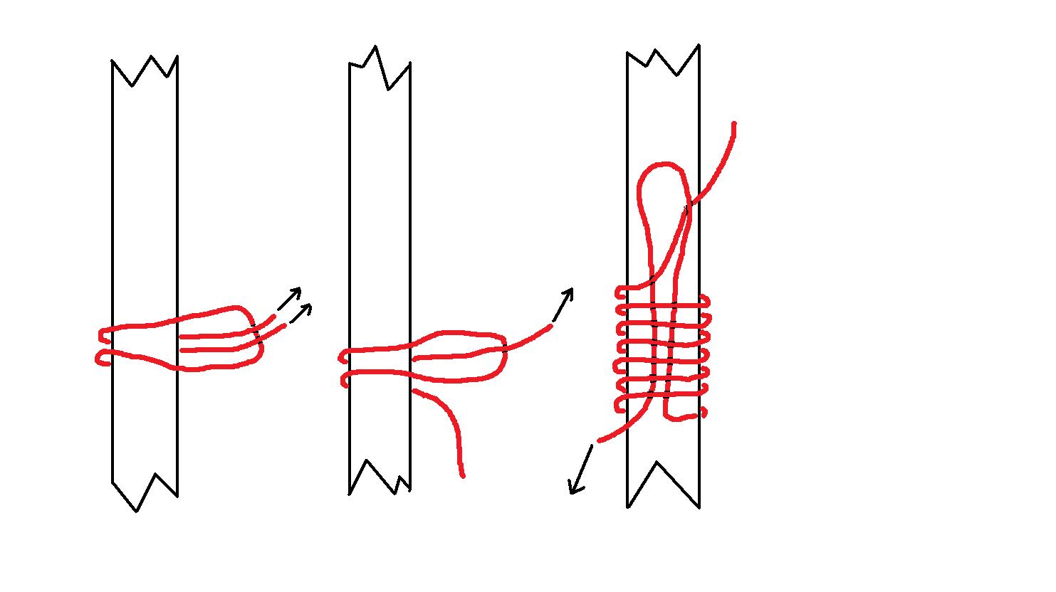 Und die Frage nach dem Knoten der Wicklung steht auch noch aus. Kann mir kaum vorstellen, dass da ein normaler Knoten reichen und auch halten würde.