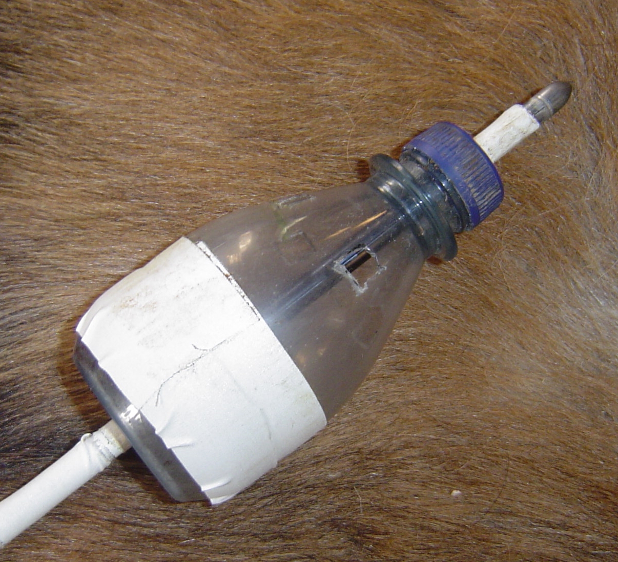 Ich hatte meinen ersten Pfeifton auch erzeugt, indem ich einfach eine Messingspitze innen aufgebohrt und dann seitlich mit zwei Löchern versehen hatte. Pfiff ganz nett, aber nach dem Landen in der Erde war das Teil immer verstopft.