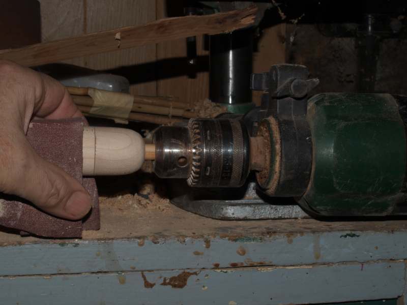 Abb.6: Am Pfeilschaftrest kann das Teil in eine Bohrmaschine eingespannt werden und wunderbar fein geschlifffen werden
