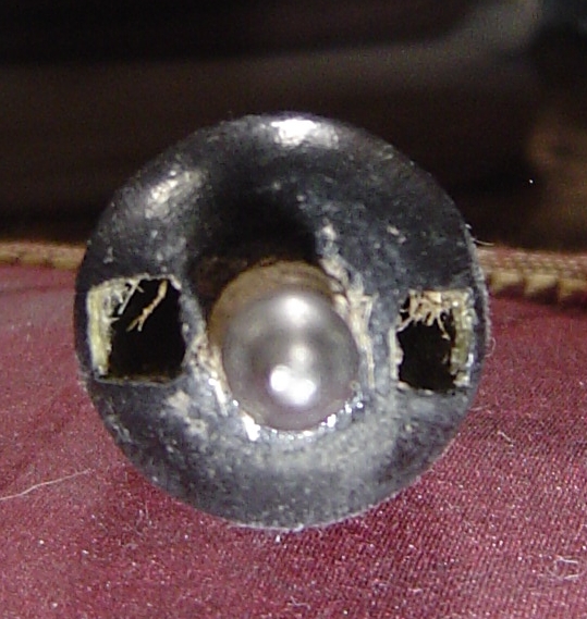 Dieses Mal werde ich den Schaft nicht komplett durchstecken, sondern wie die rote Flöte weiter oben die Spitze stumpf halten; die schöne runde Fläche will ich nicht zerstören.