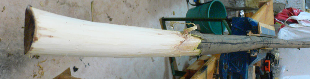 Ich habe mir mal einen der beiden holler´s geschnappt und ihm erneut die Werkstatt gezeigt zwecks aussägen des groben Designes mit der Bandsäge und anschließendem leichten abspecken mit dem Ziehmesser damit er in Ruhe weiter trocknen kann.