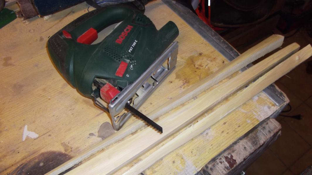Die Form und den Griff dann mit der Stichsäge ausgesägt. Jetzt lasse ich ihn weiter trocknen denn er verliert,