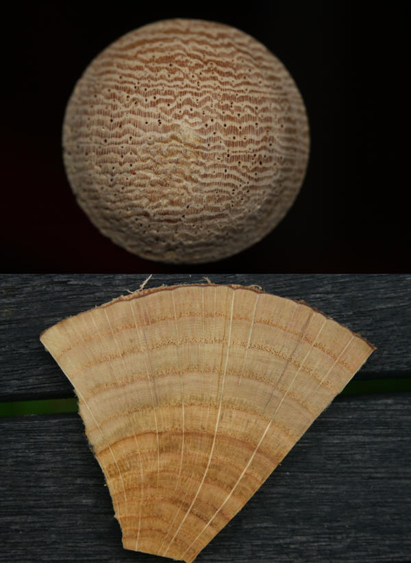 Hab noch mal einen Roteicheanschnitt mit Mustergültigen Jahresringen rausgesucht --zum Vergleich .Allerdings war der Stamm 25-30 cm Dick .
