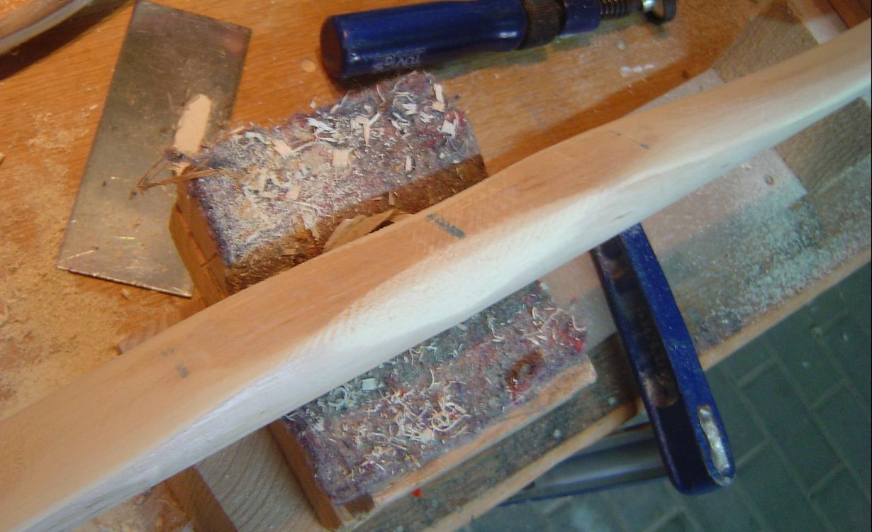 3. Kanten oben und unten mit Ziehklinge nur minimal abgerundet damit man sich kein Splitter einfängt