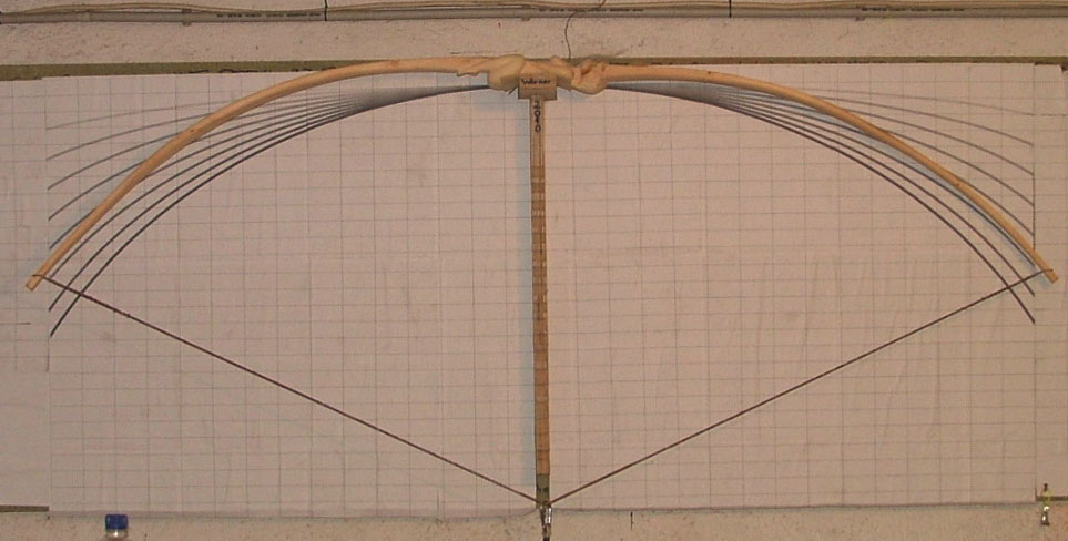 Nach einigen Pfeilen hat sich das Tillerbild ein wenig geändert und die Biegung hat sich etwas nach außen verlagert. Aber da gehört noch der Feintiller abgestimmt, ich hab nur noch wenig Zeit und die Schlange muss mindestens 2 Tage trocknen, daher werde ich erst mal die Schlangenhaut draufzumachen und den Feintiller am Samstag wenn die Haut trocken ist.