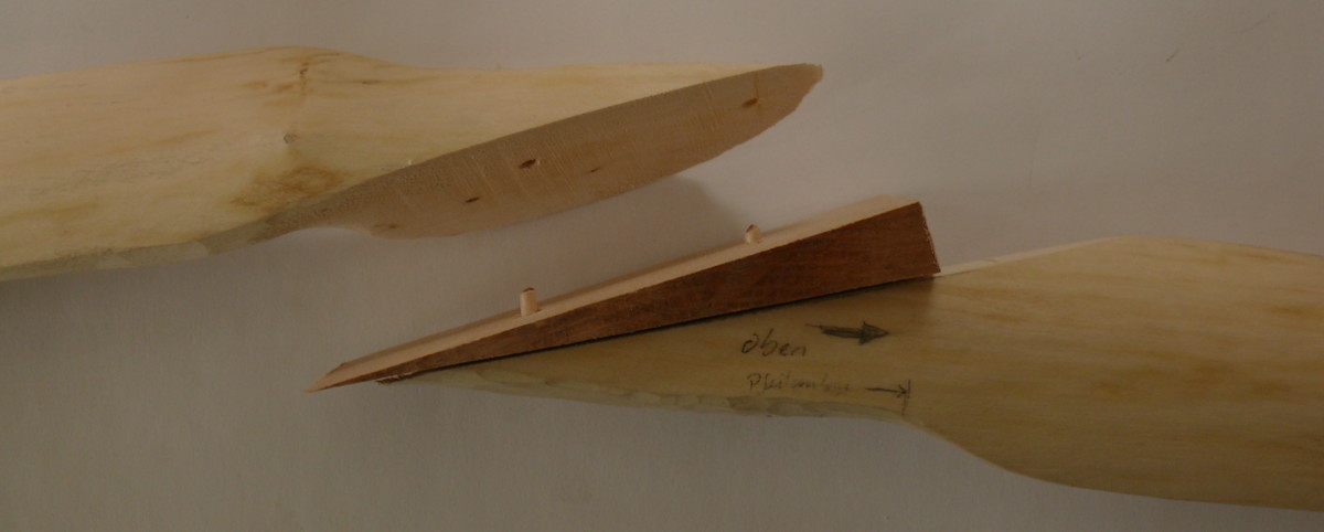 Es sind für mich einige Neuerungen dabei. Es ist mein erster Bogen aus Amelanchier ovalis, mein erster Zweiteiler und der erste Bogen bei dem von Anfang an den Einsatz von Klebstoff beschlossen war und es ist mein erster Bogen mit einem Drehwuchs von ca. 250° je Meter.