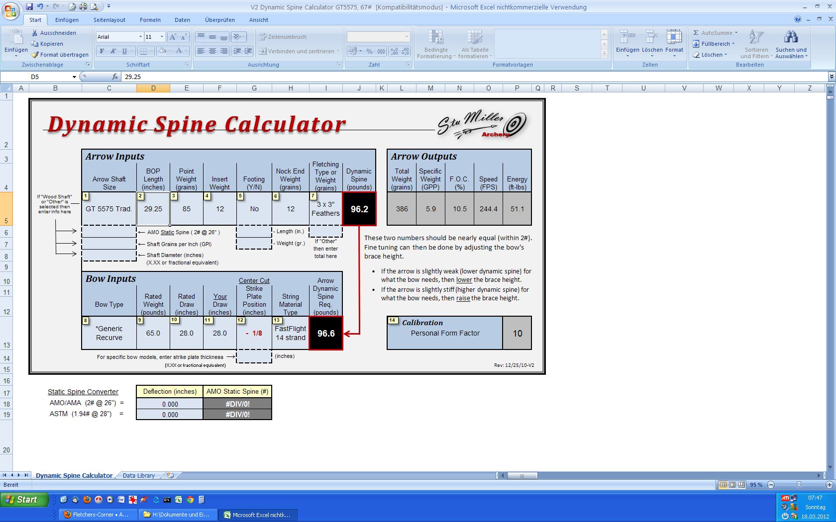 Re: Fragen zum "Spine Calculator" von Stu Miller