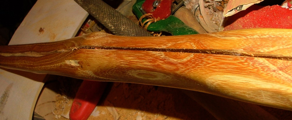 Und ein von mir gestifteter Preis war ein Osage Stave den Archiv gewonnen hat. Archiv ich hab mal den vorbereiteten Osage Stave leicht besäumt und von der Rinde befreit